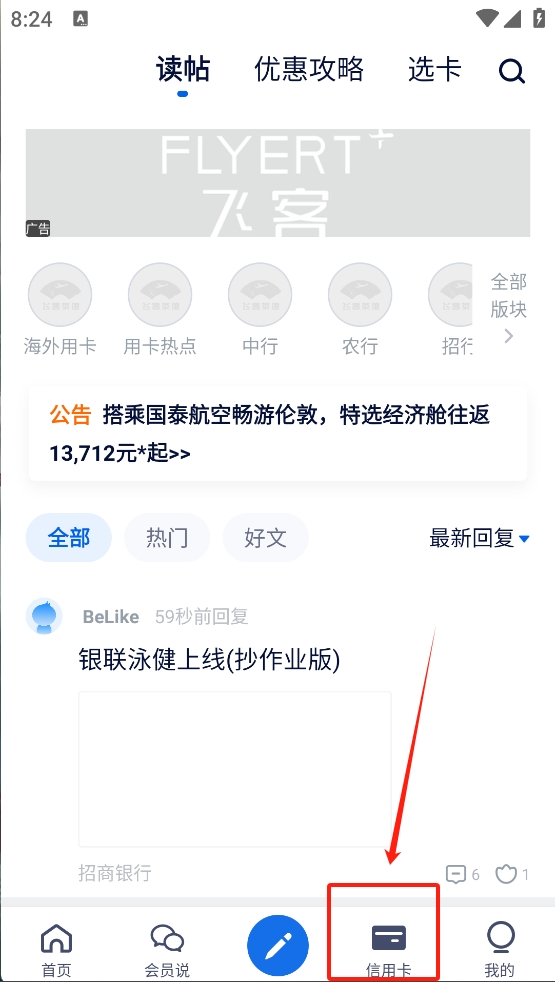 4、点击“信用卡”图标,管理你的旅行相关信用卡和查看优惠信息。