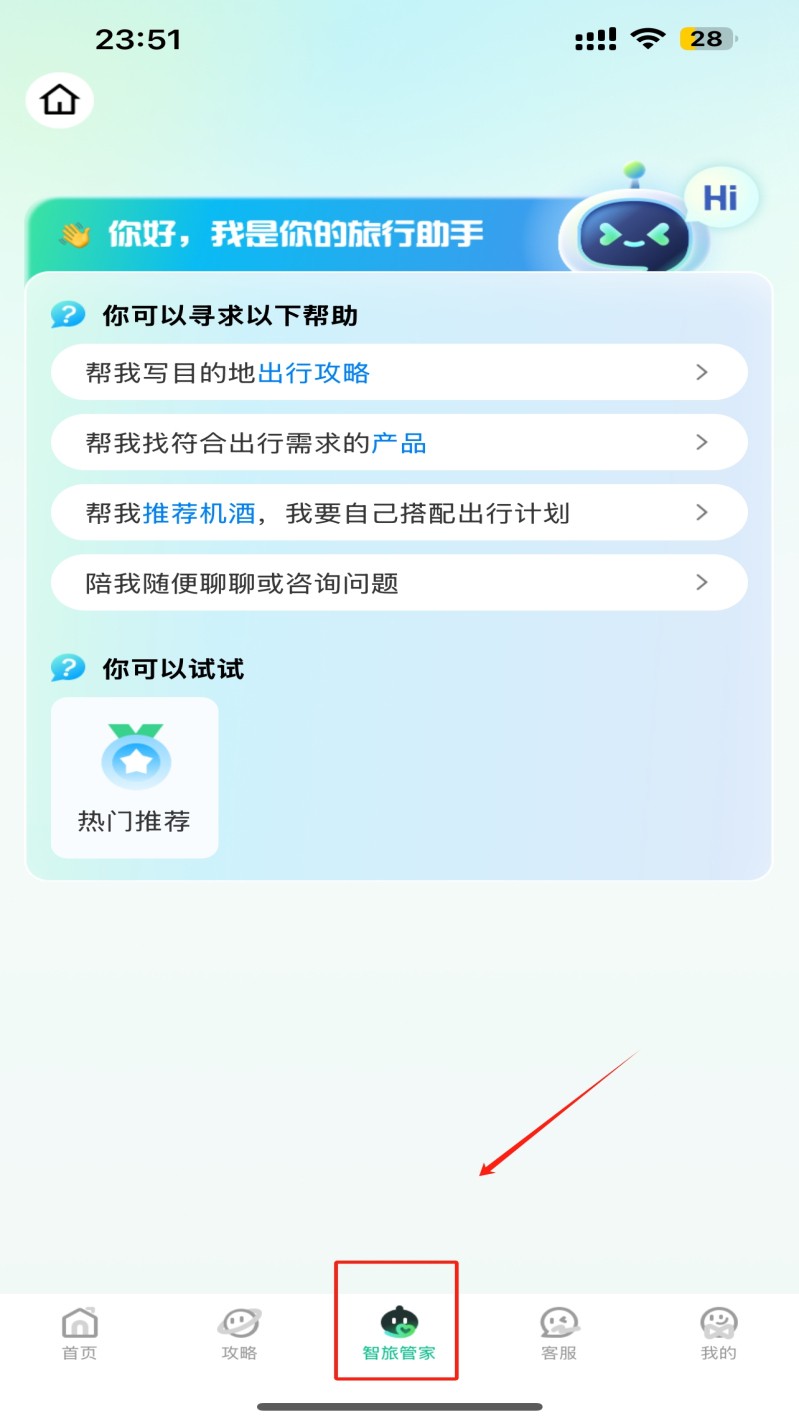 3、获取旅行建议:在智旅管家页面,获取个性化的旅行建议和帮助。