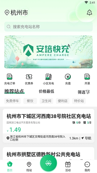 安培快充是一款便捷的电车充电服务软件,借助智能定位导航功能,能帮助用户快速找到附近最优的充电桩。用户还可以依据充电站的价格、距离等条件进行筛选,也能直接搜索特定充电站的名称。选定后,可一键启动导航,精准抵达目的地,大幅节省时间。此外,扫码支付时支持多种支付方式,无需携带现金。