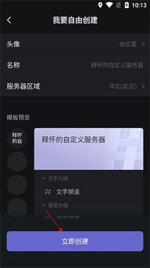 直接上传头像,直接输入名称和区域,直接点击“立即创建”。
