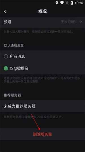 直接将页面滑到底部,然后选择“删除服务器”选项即可操作。