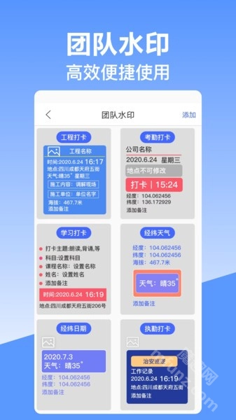 软件支持添加定位打卡水印,且该打卡标记具备不可更改的特性。