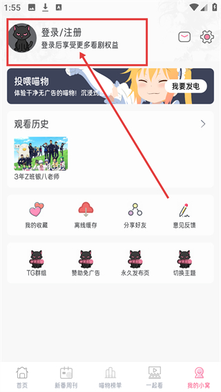 2、首先,用户进入“我的页面”,就能看到“立刻登陆无广告”栏,之后点击就能进入。