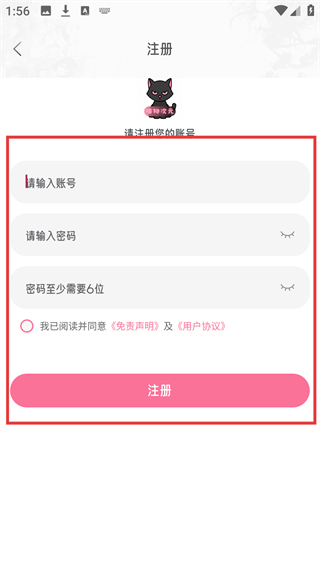 4、在注册页面输入账号、密码,勾选协议后点击注册,即可完成账号注册操作啦。