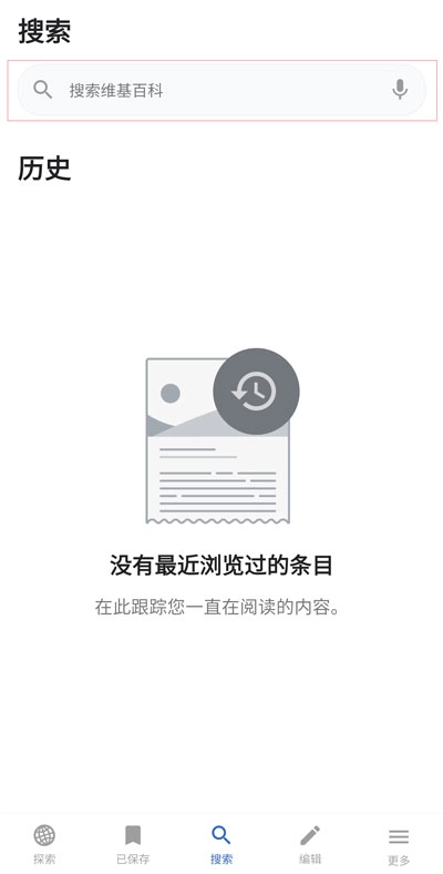 维基百科手机版,安装后打开,点击搜索;