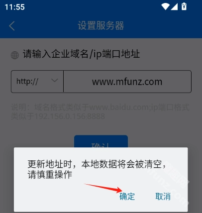 在搜索栏里填入企业的域名或者IP端口地址,接着点击【确定】按钮。需要注意的是,IP端口的格式要像192.156.0156:8888这样,域名的格式则要类似www.xxxx.com。