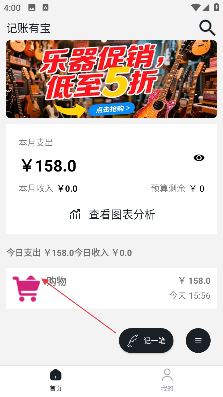 4、返回首页,可查看已记的收支明细,完成记账操作。