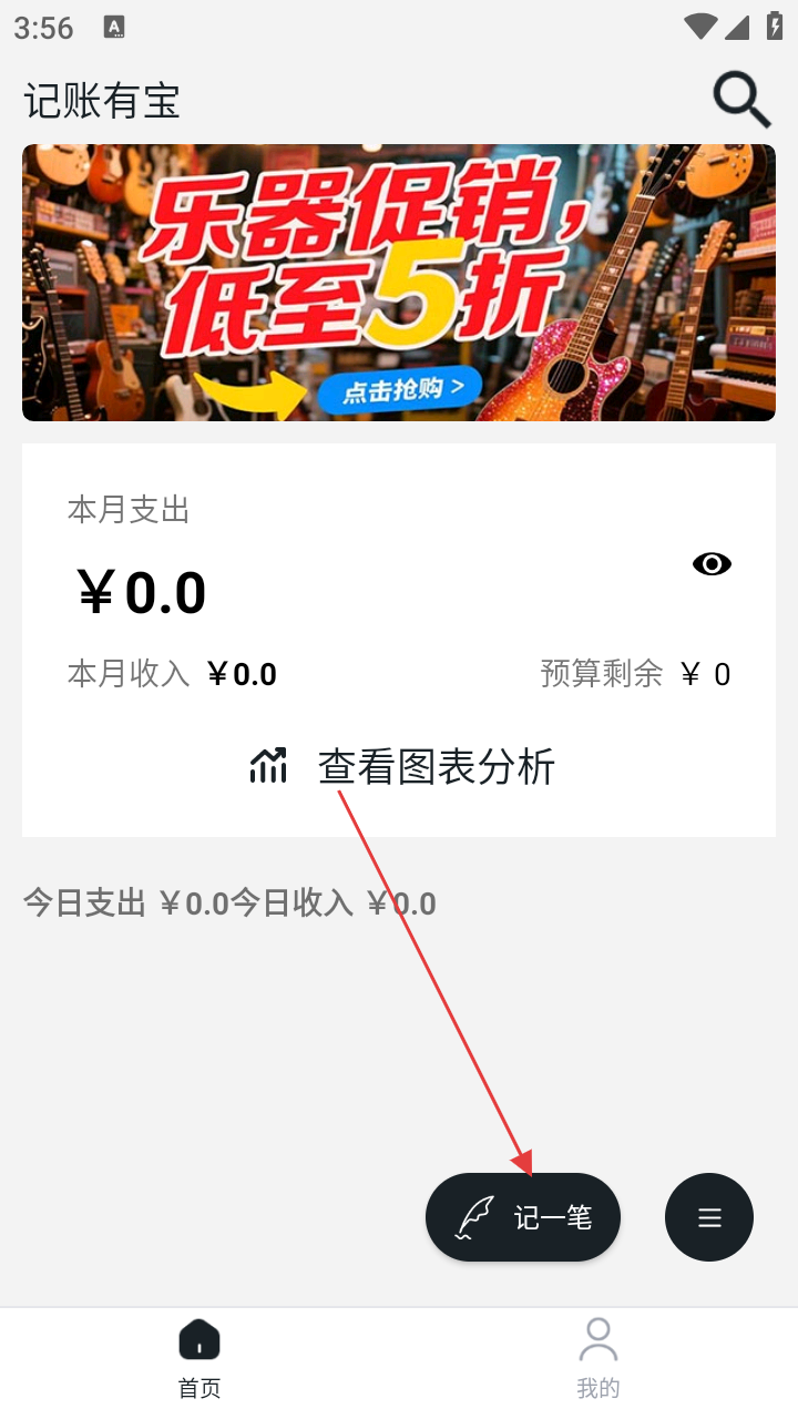 1、打开应用,点击底部【记一笔】,进入记账流程。