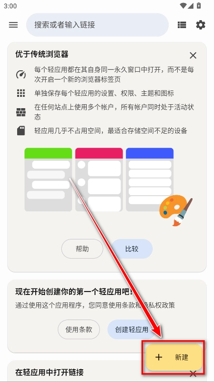 在Hermit的输入框里,你可以直接搜索内容或者输入链接,接着选择在浏览器中打开,就能开始使用了。像通知、书签、搜索、分享这些功能都具备,而且基本不需要你额外去设置,操作起来十分简单,浏览速度也特别快。另外,Hermit安卓版不会在后台自动运行,你完全不用操心它会耗电。