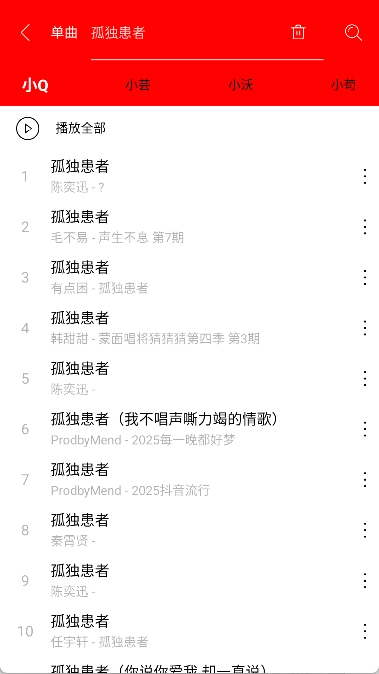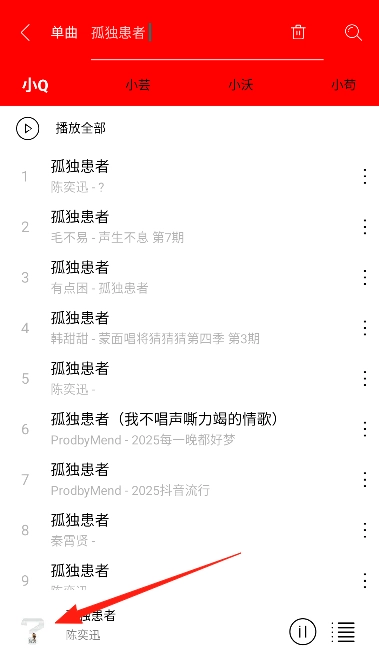 输入自己想的歌曲名称或歌手名称进行搜索。