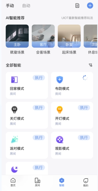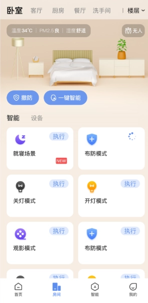 切换房间界面,可以点击执行自己设定的智能场景。