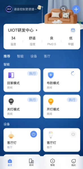 超级智慧家,也就是大家常说的UIOT,是一款能提供智能家居服务的实用工具。借助它,你可以随时随地用手机操控家里的智能设备,还能根据自己在不同时间、位置、天气等场景下的使用习惯,定制专属的智能场景模式。只需一键操作,就能让多个设备协同联动,既能为你省去不少麻烦,又能让你轻松享受便捷舒适的生活。