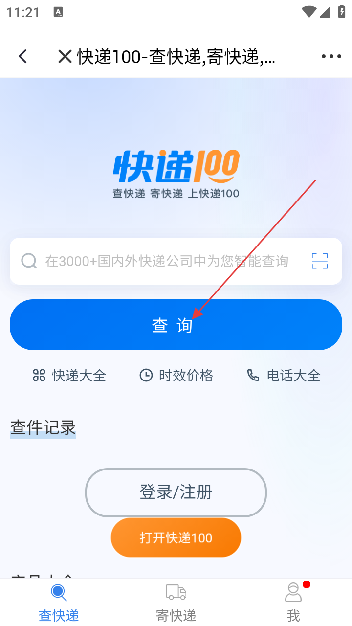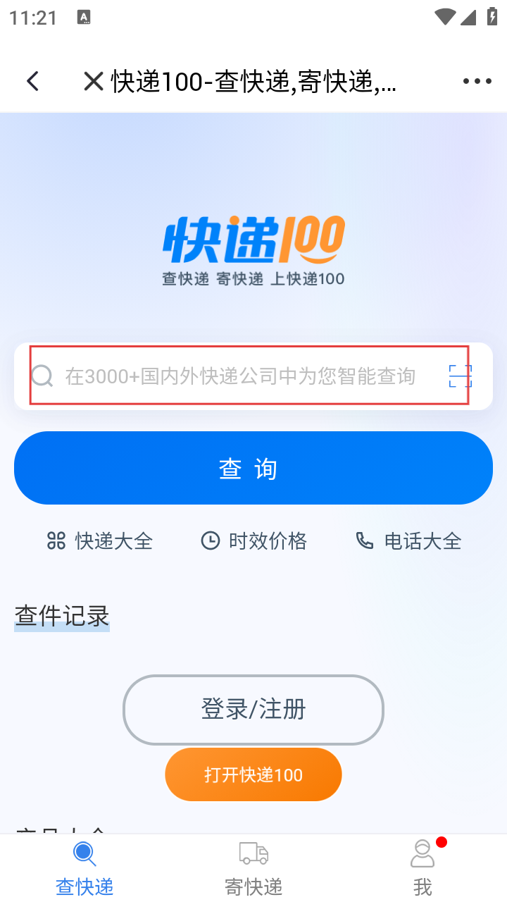 3、进入“快递100”页面,在搜索框输入快递单号。