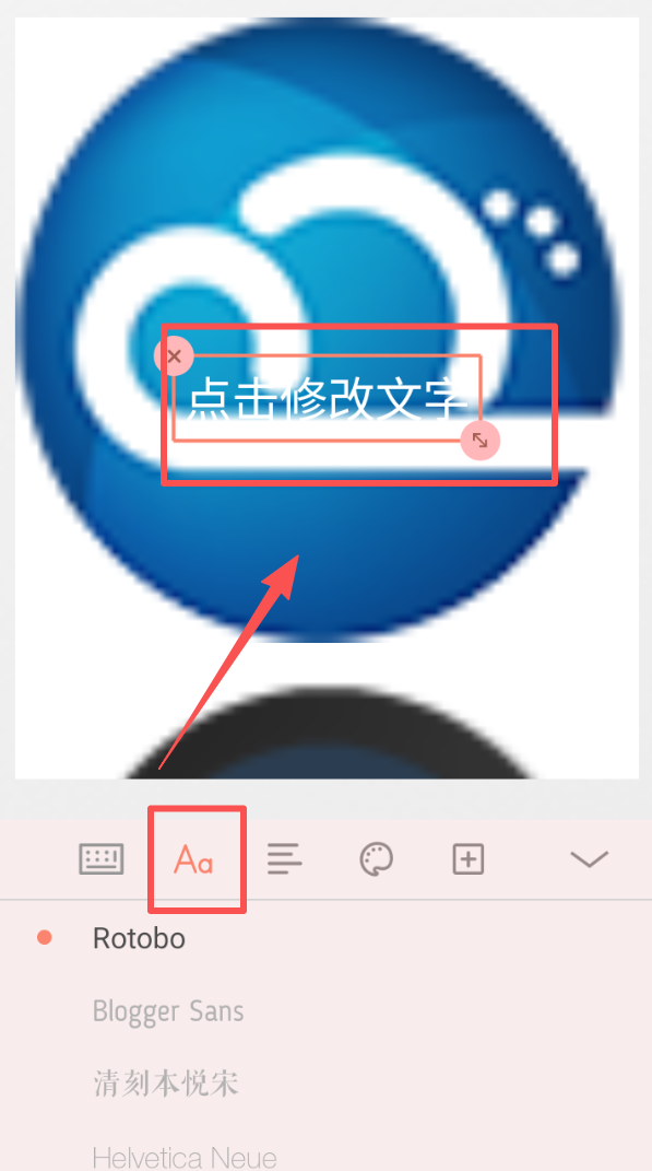 4、点击文字编辑按钮,选择字体样式,修改图片上的文字内容,适配整体的展示效果。