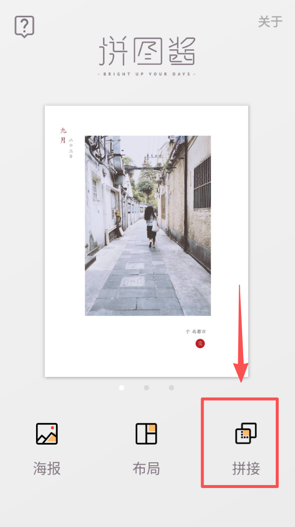 1、打开APP,选择右下方“拼接”选项。
