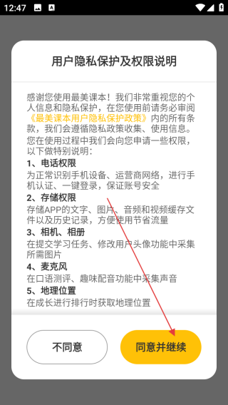 1、打开应用查看用户隐私保护及权限说明点击同意并继续。