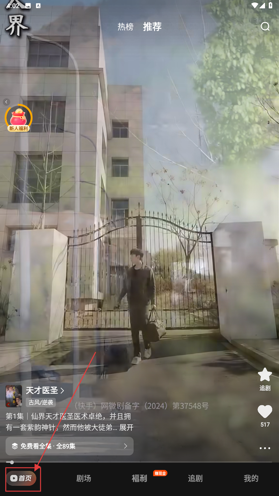 1、打开应用,在【首页】可以浏览推荐短剧。