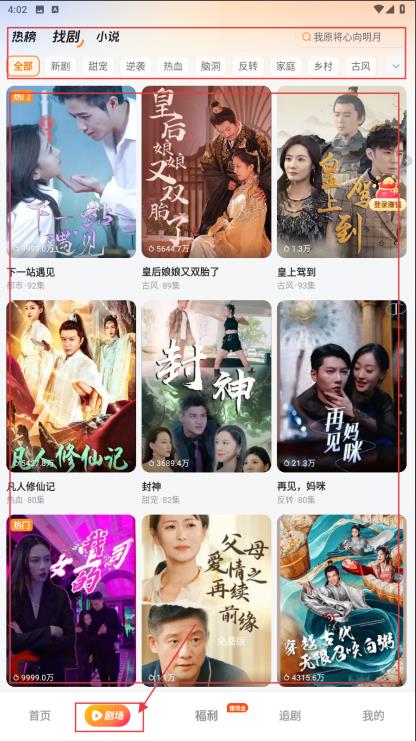 2、点【剧场】,按分类(甜宠、逆袭等)选短剧(如《下一站遇见》)。