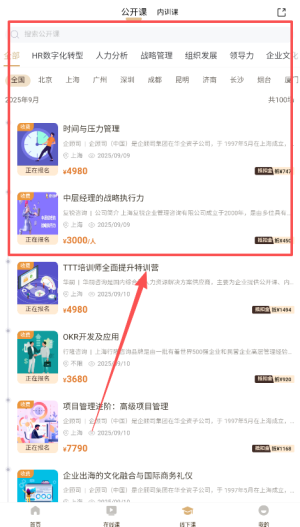 2、浏览课程目录,选择相关领域的培训课程,根据实际需求进行学习,充实个人的专业知识和技能。