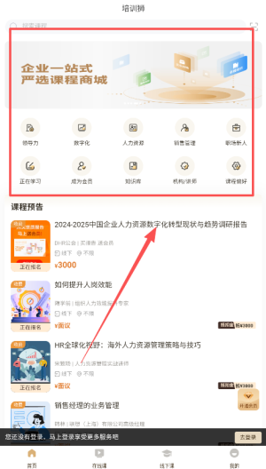 培训狮专注于为企业提供全面,高效的培训方案,结合丰富的课程资源,优质的学习体验以及完善的功能设置,旨在帮助员工不断提升专业素养和职场竞争力。无论是企业管理者还是普通员工,都能在这里找到符合需求的培训内容,助力个人发展与团队壮大。