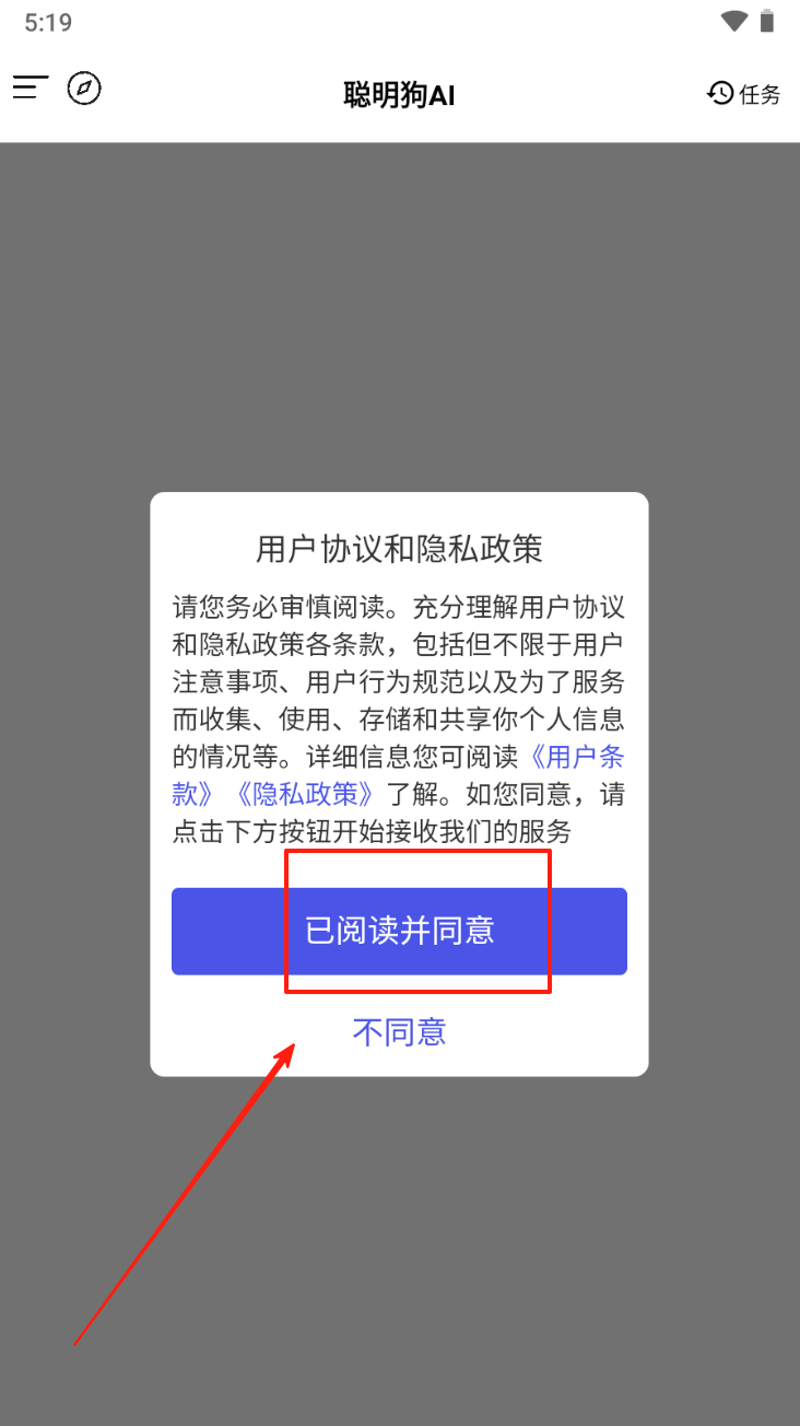 1、点击“已阅读并同意”按钮以接受用户协议和隐私政策。