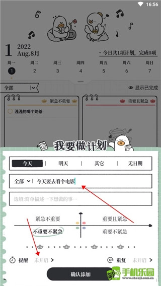 在这里写入要办的事件和备注,还可以设定具体时间。