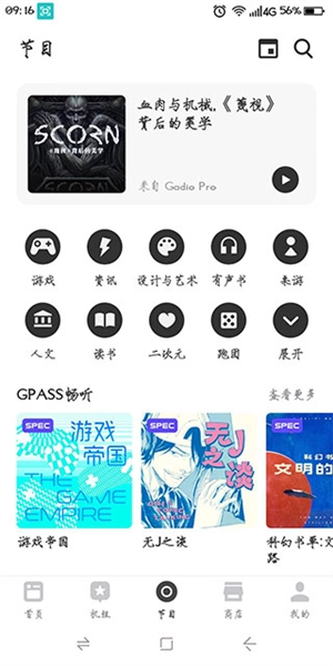 节目涵盖游戏、资讯、设计与艺术、有声书、桌游、社交、读书等特色栏目。
