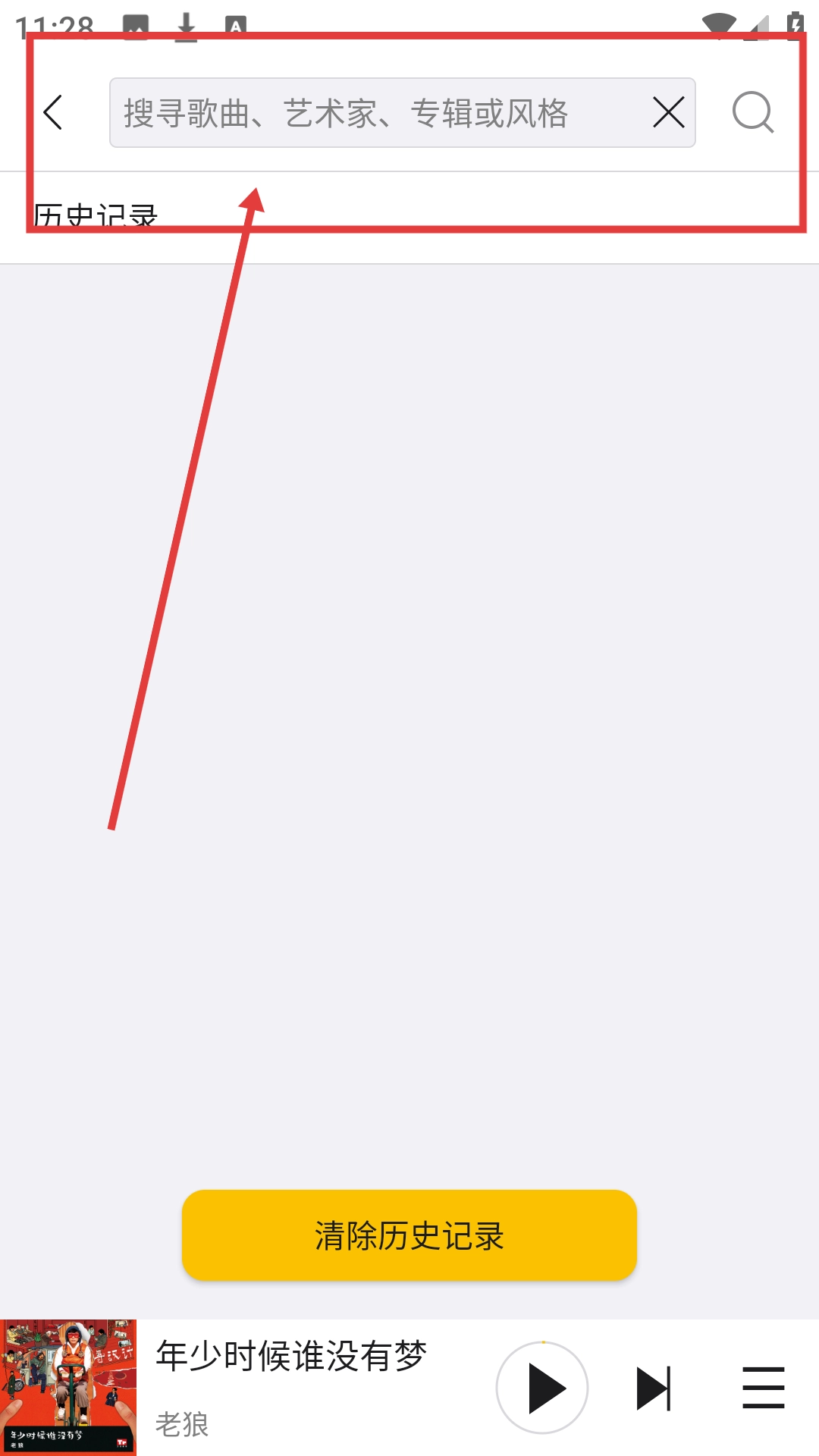 在音乐应用页面点击【搜索】框,进入搜索页面可查找喜欢的音乐哦。