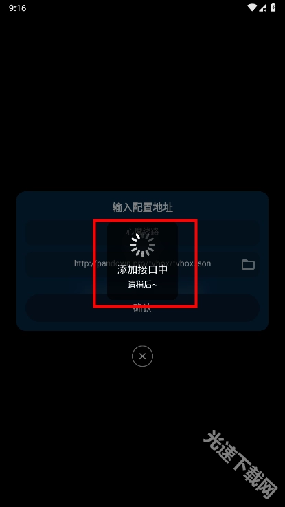 接下来输入配置地址,上方填写名称,下方填写配置地址,示例:http://cdn.facehy.cn/tv4k.json(若需更多配置地址,可查看相关内容)