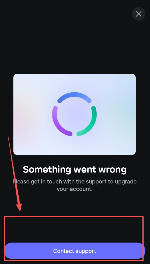 第一张截图呈现的是账户升级时出现的错误提示,遇到这种情况不用着急。你可以点击界面上的“联系客服”按钮,直接把升级账户的需求提交给支持团队。