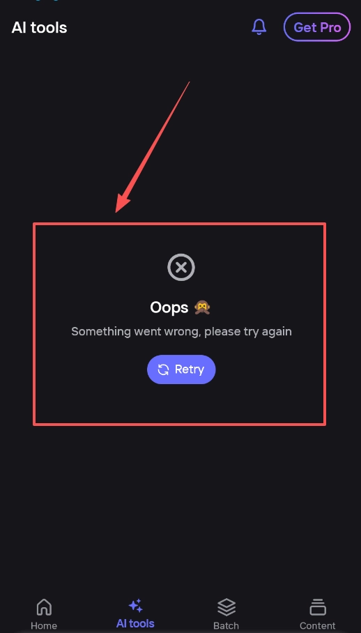 最后一张截图出现AI工具加载失败的情况,你可以尝试点击“重试”按钮。要是多次重试都没效果,建议检查一下软件是否有可更新的版本。
