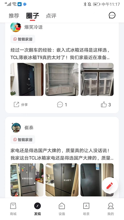 在发现页面,有推荐、圈子和点评这几个板块,能看到来自不同用户的真实评价。