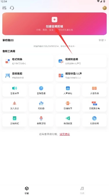 在功能选择页面点击“创建音频剪辑”选项后,系统会自动跳转到素材导入界面。