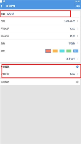 输入标题和提醒时间后点击保存即可
