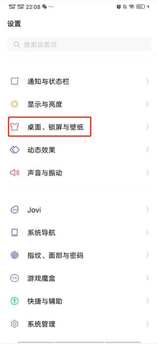 在设置中进入桌面、锁屏与壁纸
