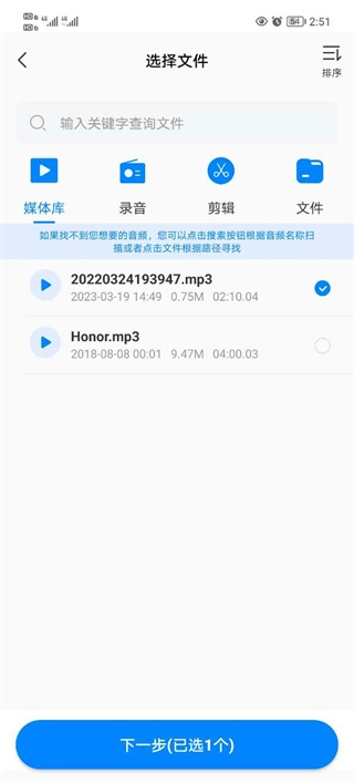 然后勾选自己所需要编辑的音频文件。