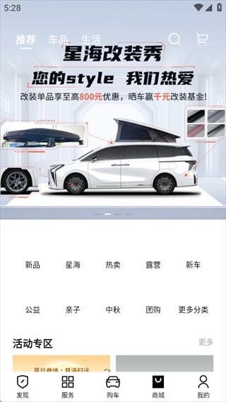 商城里有不少汽车周边产品可以挑选购买,也有很多活动等着你来参与。