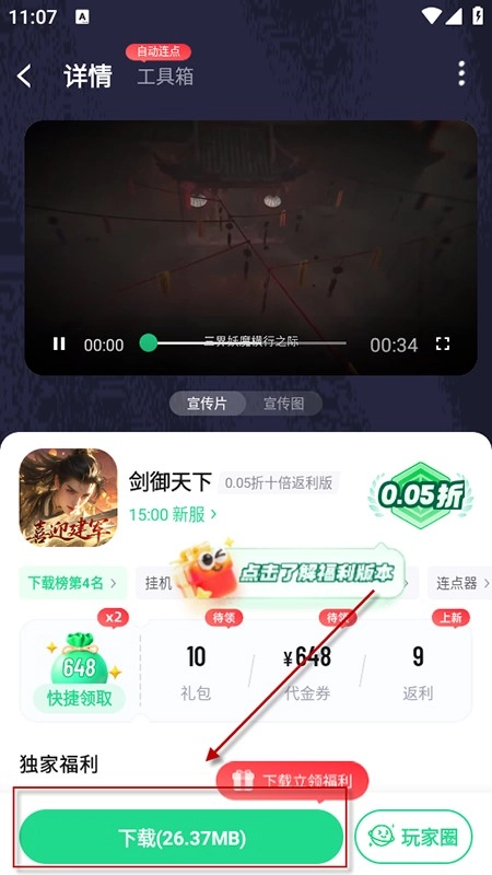 找到心仪的游戏后,你可以直接在平台内查看游戏详情、了解开服时间,点击安装就能开始游戏,还能享受平台提供的折扣和福利。