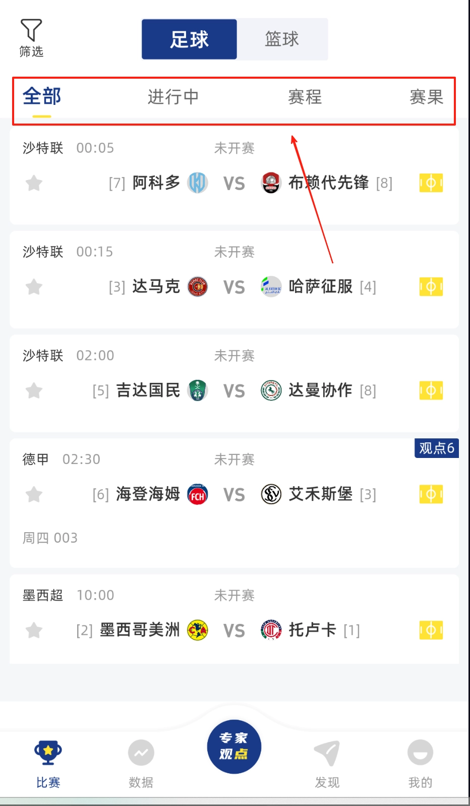 用户注册登录后,可自行选择想要关注的赛事类型,系统会自动为其推送相关赛事的举办时间以及对应的直播入口。