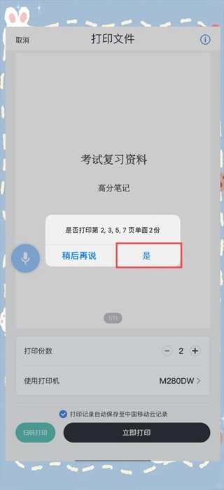在打印界面,你只需长按麦克风图标,接着清晰地发出指令:“至像同学,请打印第2页、第3页、第5页和第7页,并且打印两份。”如此一来,你就能轻松搞定复杂的打印任务,不用再进行繁琐的操作步骤。