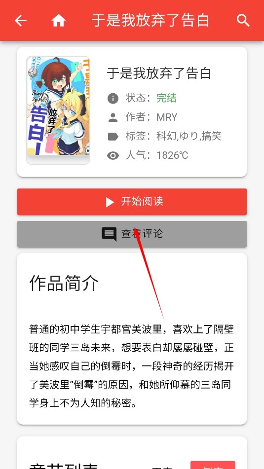 在介绍页面中点击开始阅读