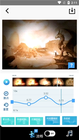 变速调节功能能够灵活添加多种变速效果,轻松调整出各种精彩的视频播放速度。