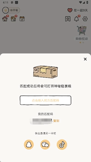 你可以复制自己的专属匹配码,通过社交软件发给伴侣,对方输入这个码就能完成双方的匹配绑定。