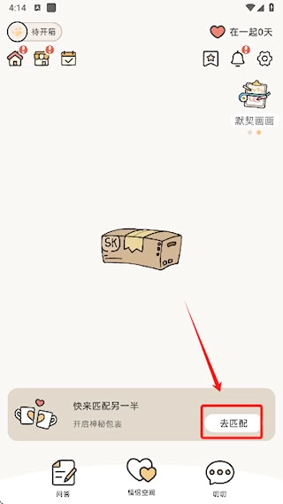 点击底部导航栏的“去匹配”按钮后,系统会弹出匹配窗口,此时输入伴侣的已知匹配码就能发起连接请求。
