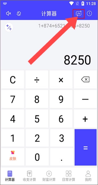 完成计算后,界面会清晰展示运算结果,像数字8250这样的例子,点击右上方的功能图标,就能对当前计算结果进行复制、存储或者分享等后续操作。