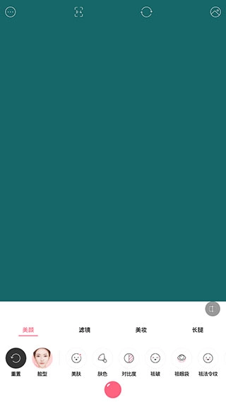点击右下角的【美颜】按钮后,我们还能通过调节美肤、肤色、对比度、祛皱、祛眼袋等选项来优化拍摄效果。
