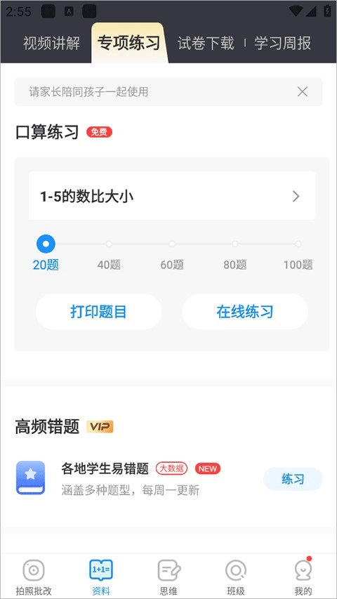 自动收集错误,支持一键打印重复练习。