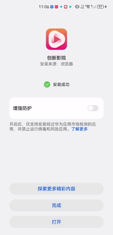 最终页面显示“安装成功”的提示后,点击界面下方的打开按钮,就能开启精彩内容的体验之旅。