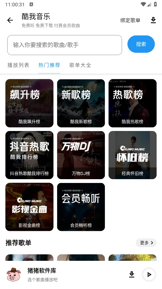 随意点击进入后,便能滑动挑选心仪的音乐榜单来开展搜索。