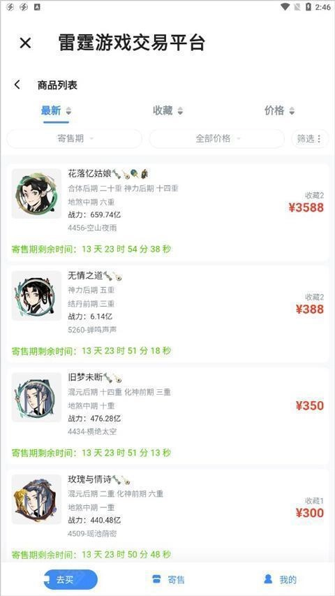 接下来就可以购买账号,或是寄售一念逍遥的账号,直至交易结束。